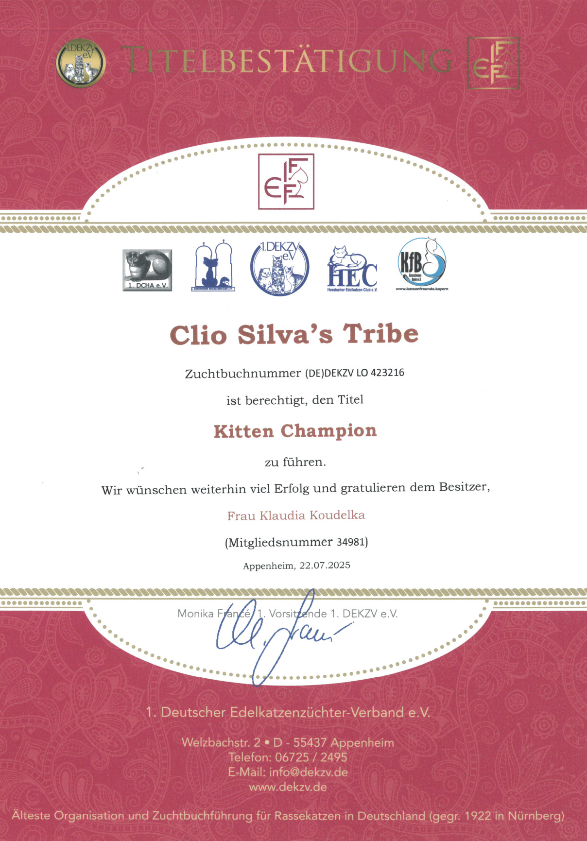 Best in Show, Wolnzach - 24.05.2025 Kittenchampion